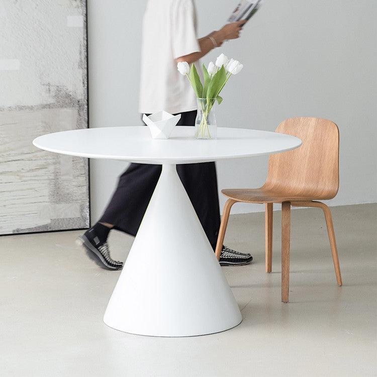 This glam of contemporary simple-style table compliments any environment to exhibit décor. Put some meals and beverages, snacks, and even novels on it and relax. The hourglass pro shape with a cone base boosts the dining table's solidity. The FRP spray painting finish provides it an eye-catching design and is scratch-proof, and it is made of a solid base and a durable glass fiber top for durability and simple cleaning.