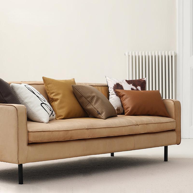 The braided leather cushion is a stylish, beautiful, and practical accent piece. Are you looking for a magnificent standout piece? So, this is it! Anyone who sees this cushion will be drawn to its distinctive pattern. The front braide and stitching are both constructed of real leather that can be machine cleaned to keep it clean. There are four color variations available.