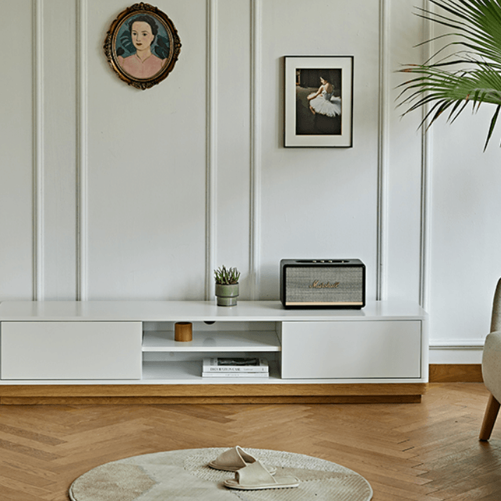 With this extended TV stand, you can give your TV some breathing room. Its sleek and simplistic design will add a classy yet basic appeal to your living area. This TV stand is made of high-quality wood and can be moved horizontally up to 3m, leaving room on the left for a storage shelf.