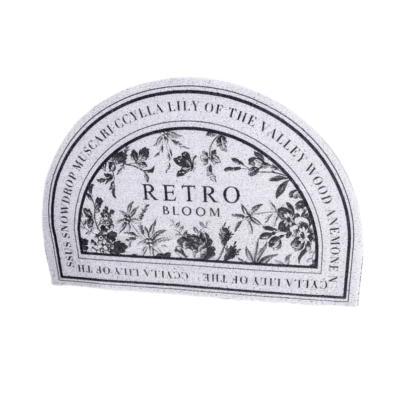 This semi-circular door mat has a rubber backing and will add style to your front steps. This doormat's substance helps to scrape dirt from shoes, and its low fluff allows for easy door opening. This door mat is mildew resistant and long lasting. Add it near the entryway to allow guests to polish their shoes, or place it outside to meet neighbors at the next informal meal.