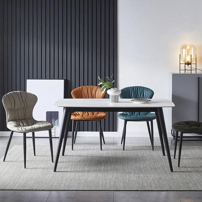 If you require dining chairs for your house, this modern exquisite armless chair will suffice! It has a fake leather exterior and a metal frame. The comfy seat and ergonomic backrest ensure your comfort. Metal legs provide excellent stability. Square lines are included in the modern design, which is full of current aesthetics. It makes it simple to achieve a pleasant atmosphere. This item is appropriate for any furniture or home style. It is made of high-quality upholstered cushion and may effectively reduce sedentary pressure. Perfect for your house, whether for decoration or practicality.