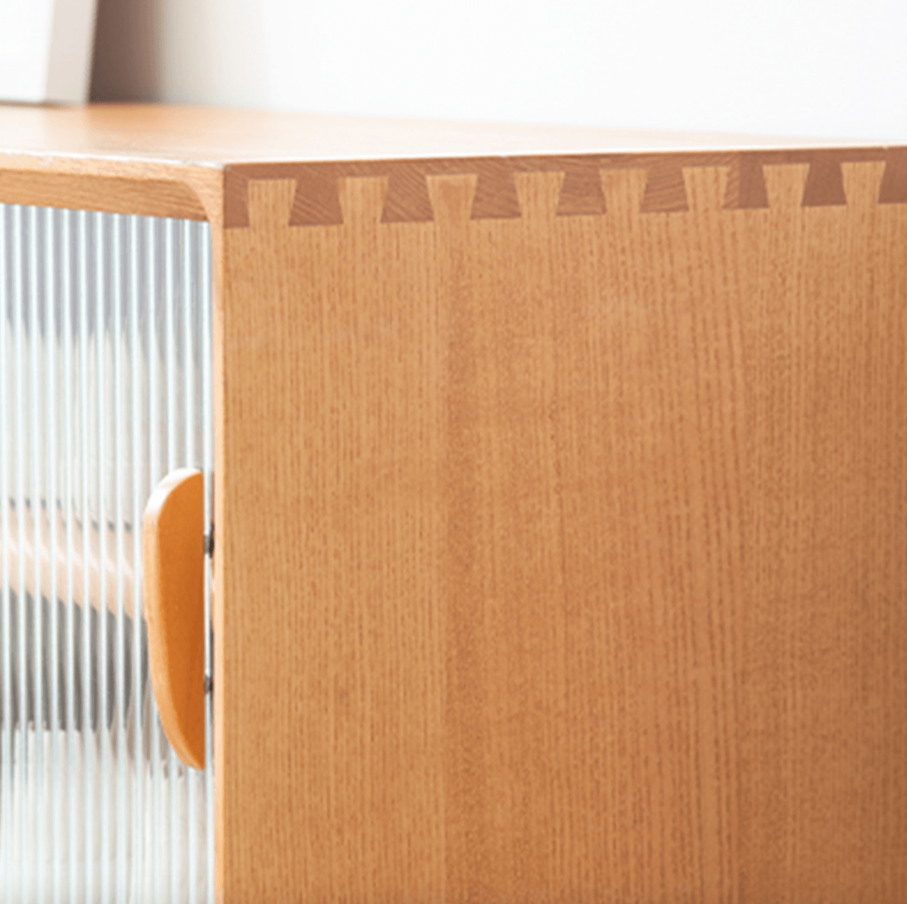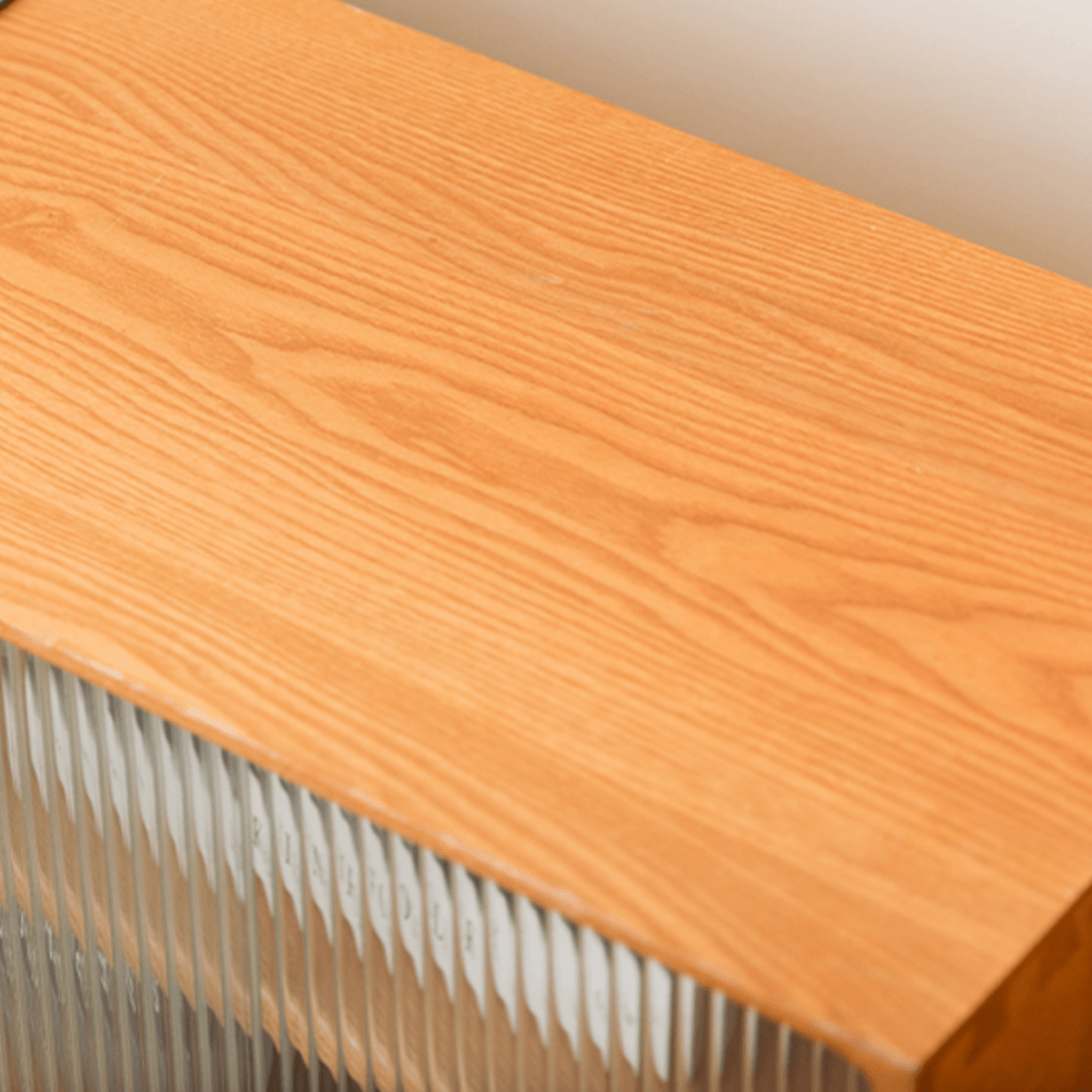 The sliding glass door moves on an exposed metal track that complements your rustic aesthetic. Two shelves are positioned within their own storage chambers, allowing you to keep all of your outdoor gear separate. This entrance cabinet blends design and utility to help you make the most of your space. The transparent glass sliding door makes picking up shoes easier.Product Details