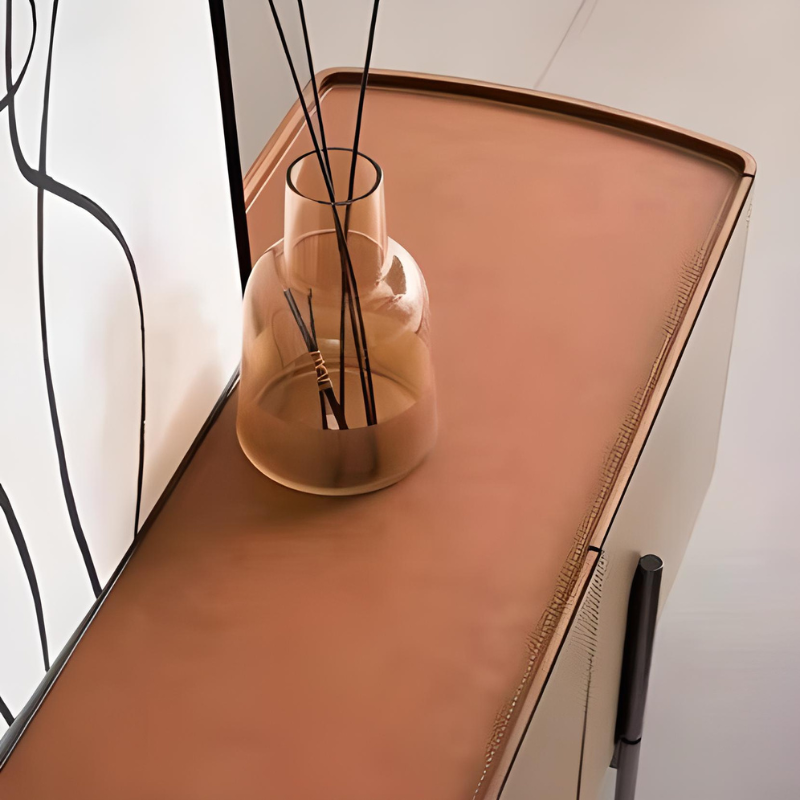 You deserve furniture that complements your own taste. This TV cabinet is ideal for storing all of your entertainment necessities in style. This TV cabinet in walnut wood with a leather table top adds a touch of elegance to your living area. Beautifully constructed, fashionable, and useful!