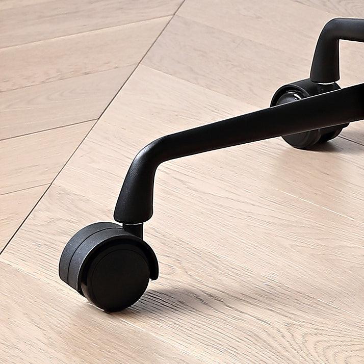 In this handsome office chair, you can go to work in a streamlined contemporary style! Its cushioned, L-shaped seat is encased in channel-tufted Faux Leather upholstery and has an arched backrest for lumbar support, as well as a gently-contoured seat for enhanced comfort and support. A chrome five-point base with metal hooded casters provides easy movement, while a lever-operated pneumatic lift column easily changes the height of the swivel seat.