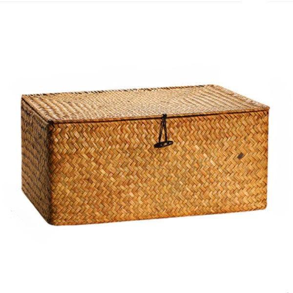 This basic wicker Basket, created from seagrass and boasting a woven pattern, is ideal for storing magazines or glossy art books in the parlor or guest suite.