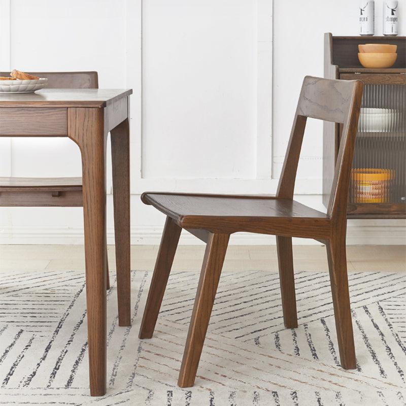 This stylish and comfy Contemporary Dining Chair will complete the Japanese-style decor of your formal dining area. It is finely made from oak and has a walnut finish. The basic but classic seat and back are appropriate for a casual eating experience. It has a special appeal because to the vintage craftsmanship and beautiful shape. Furthermore, the square hollow-out feature provides a ventilated sitting experience, which helps ease back discomfort.